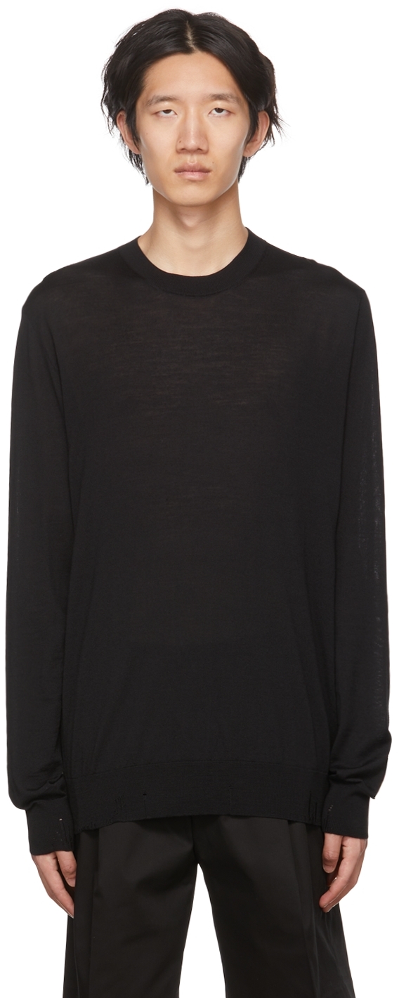 Supplier color: Dark blue,Rib knit stretch cotton-blend sweater. Subtle distressing throughout.
