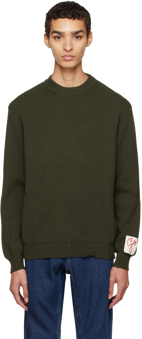 - Green Distressed Sweater